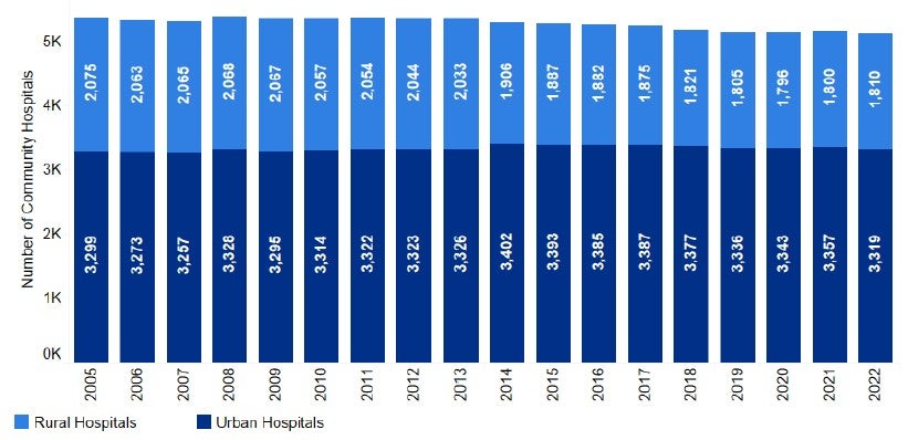 Source: Analysis of American Hospital Association Annual Survey data, 2005 to 2022, for community hospitals.