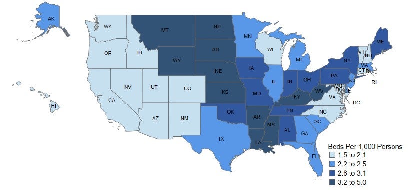 Chart 2.3: Beds in Community Hospitals per 1,000 Persons by State, 2022